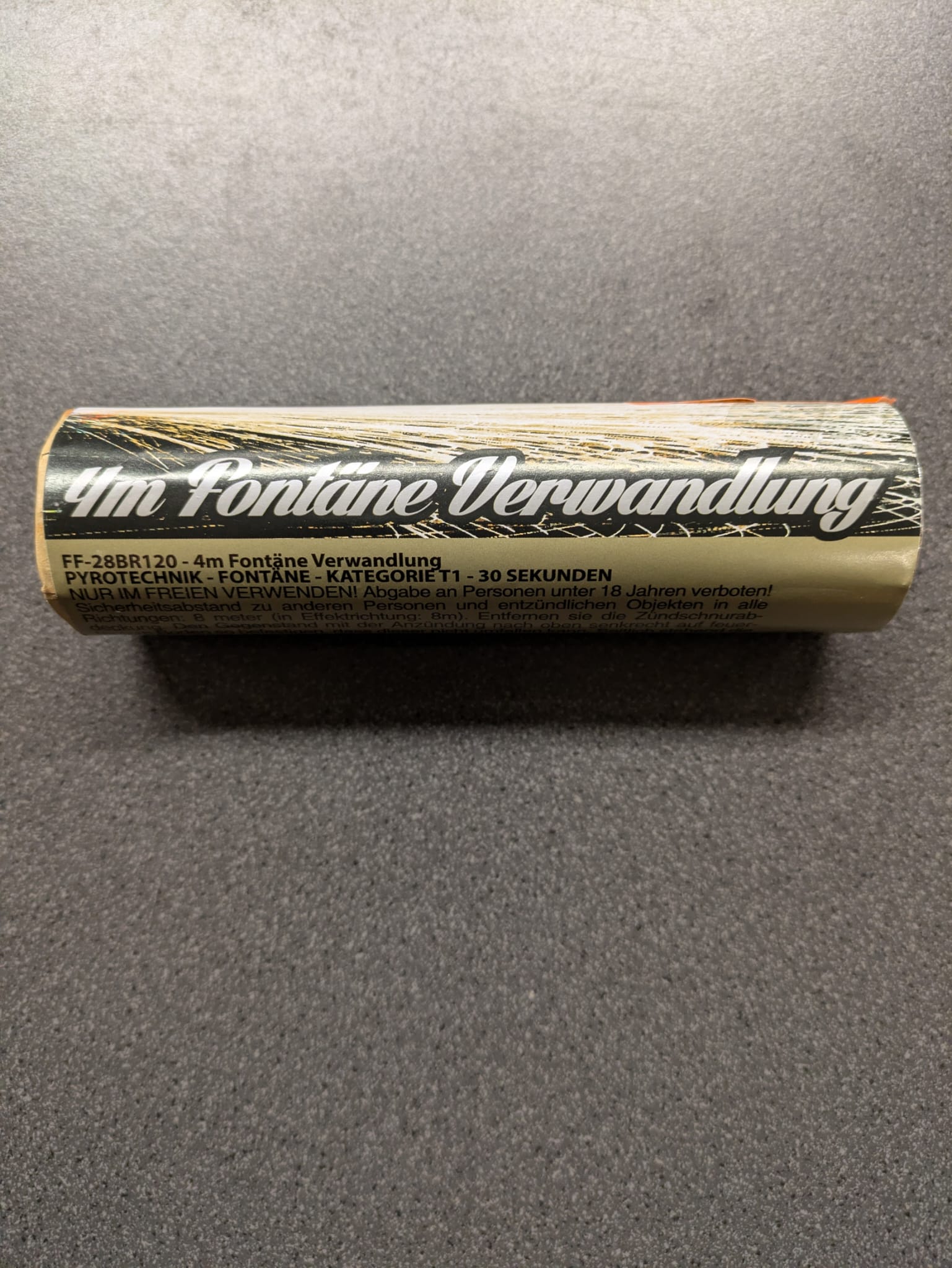 Große, raucharme Fontäne mit 30 Sekunden Brenndauer und bis zu ca. 4m Effekthöhe.