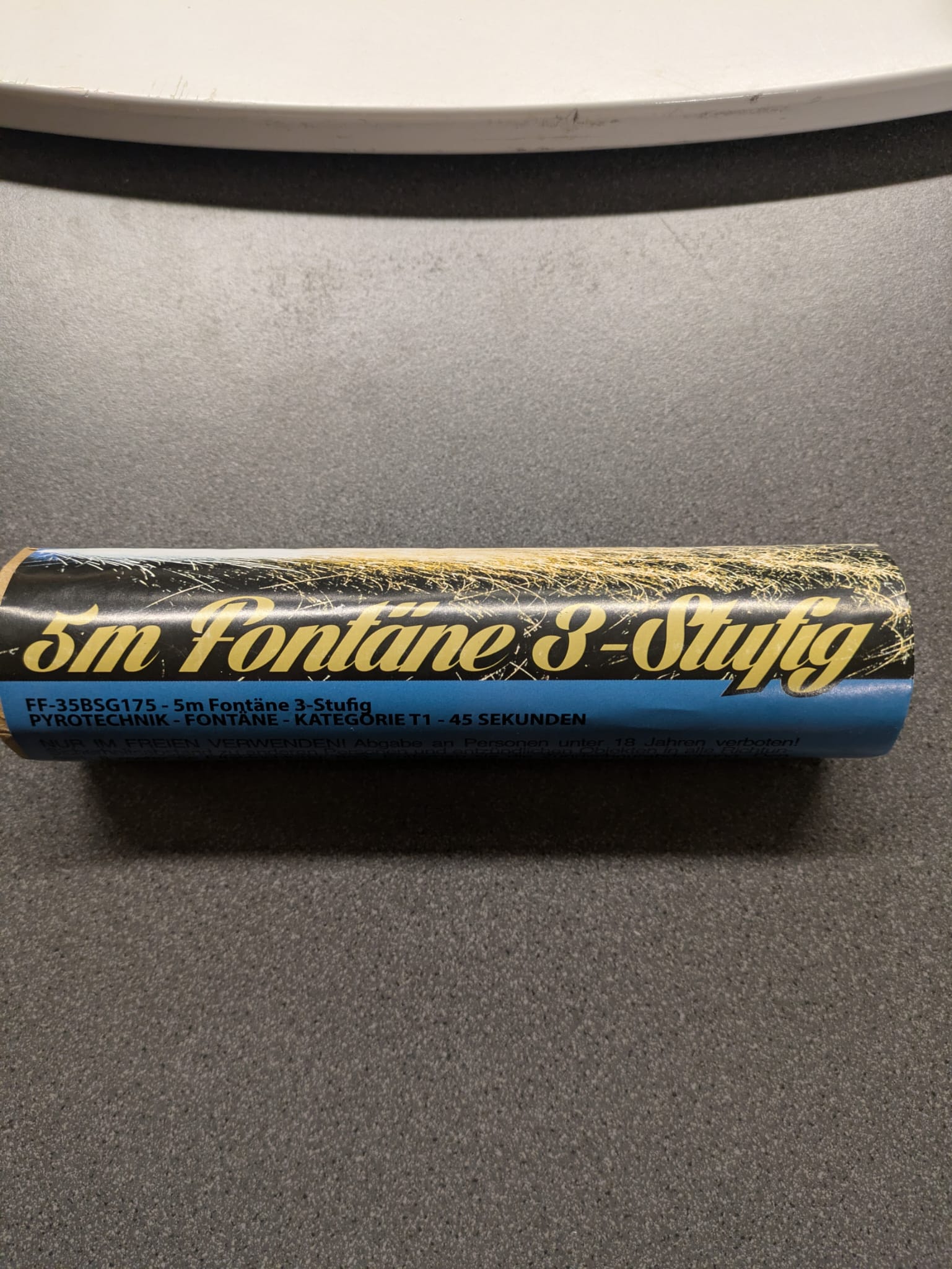Große, raucharme Fontäne mit 45 Sekunden Brenndauer und bis zu ca. 4-5m Effekthöhe.