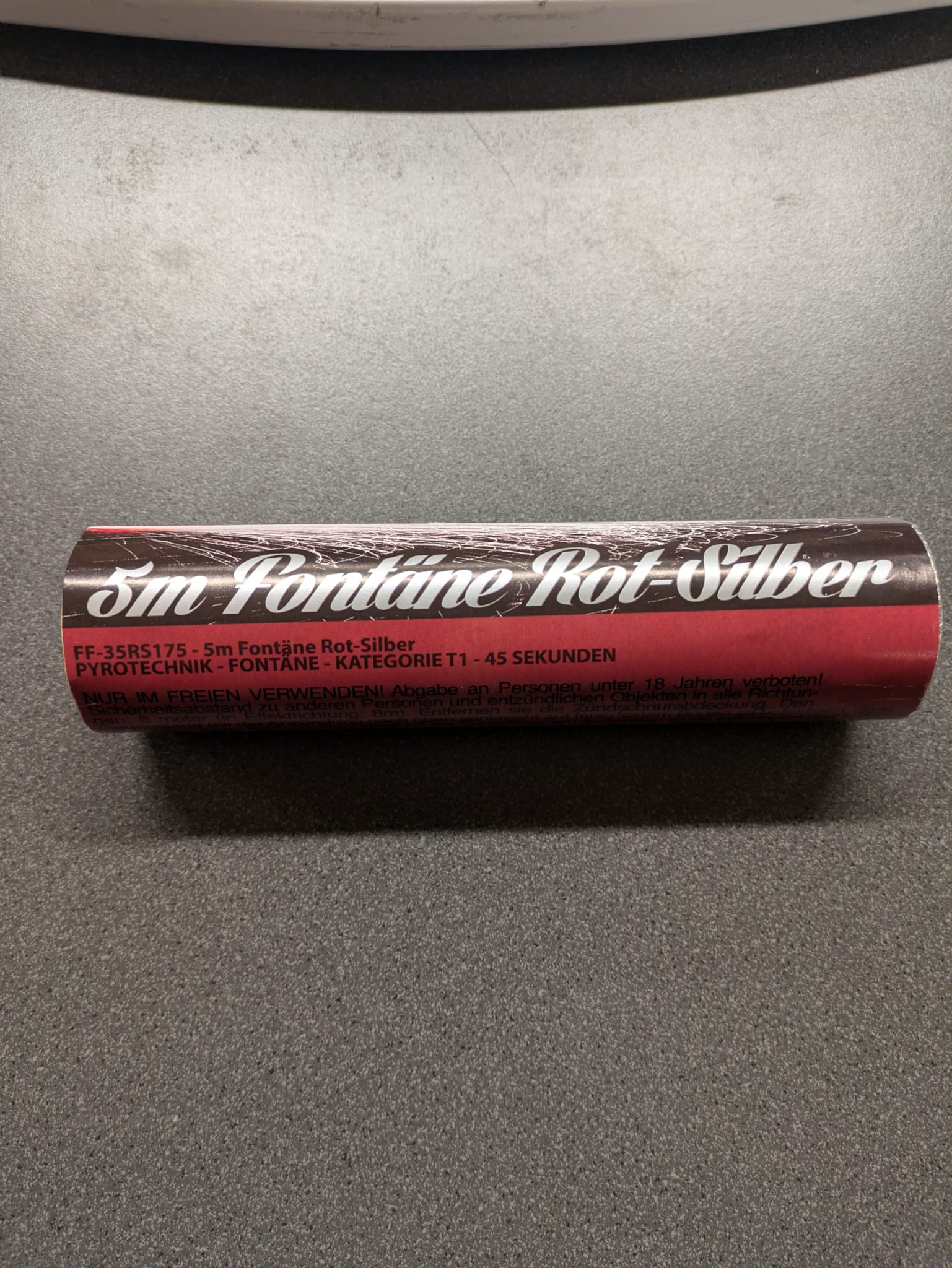 Große, raucharme Fontäne mit 45 Sekunden Brenndauer und bis zu ca. 5m Effekthöhe. Effekt: Rote Leuchtbasis mit Silberfunken-Fontäne
